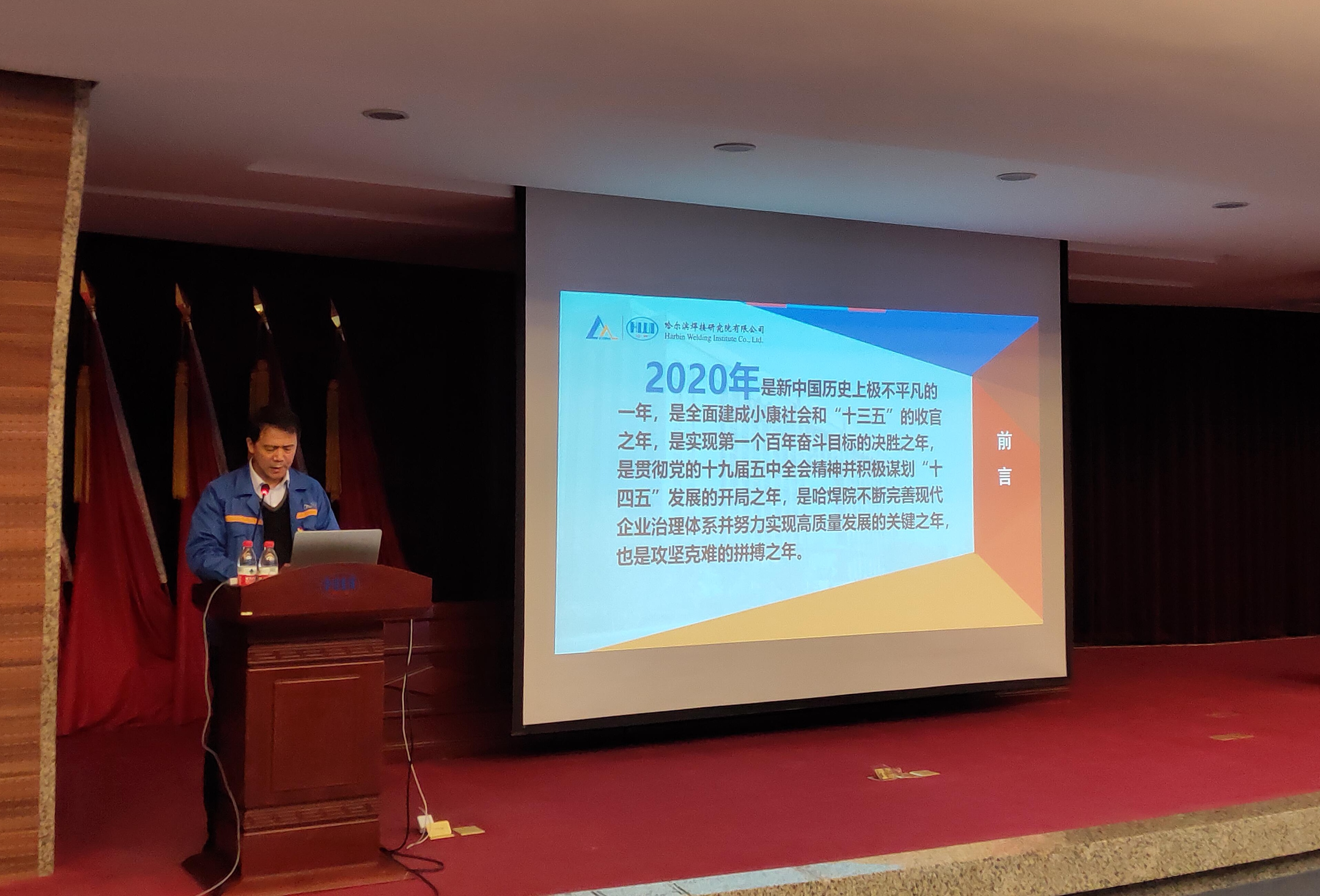2021年度工作會議由副總經理陳健同志主持。會上,黨委副書記、總經理李連勝同志作題為《砥礪奮進 創新驅動 逆勢而上 全面推進哈焊院高質量發展》的工作報告。全面回顧哈焊院2020年及“十三五”時期工作成果,分析了改革發展中存在的不足,明確了“十四五”時期總體要求和目標任務,部署了2021年度重點工作。