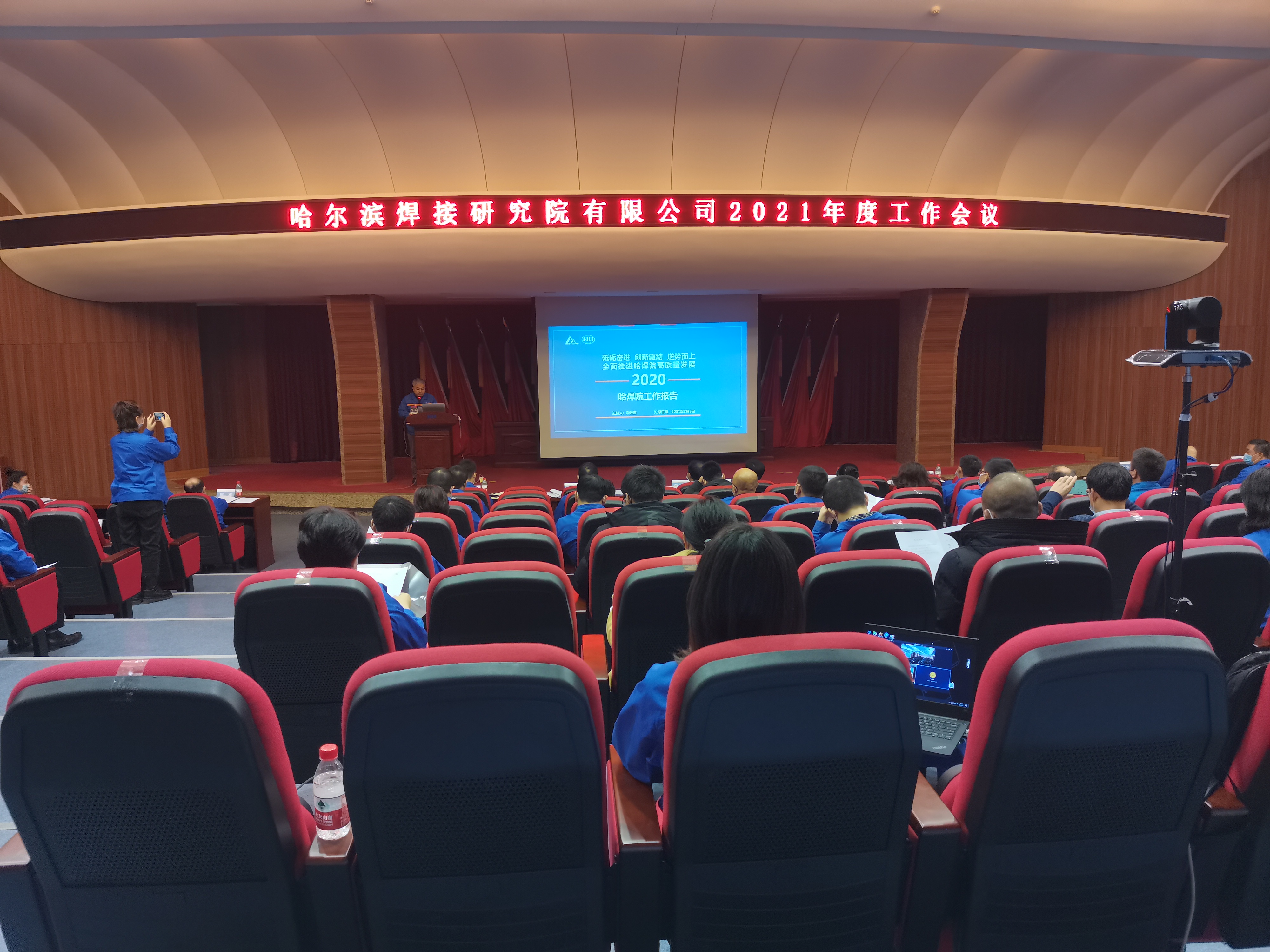 2021年2月5日,哈焊院2021年度工作會議暨職工代表大會八屆九次會議在學術報告廳召開。哈焊院領導班子成員、中層干部、黨支部書記、部分職工代表參加會議。
